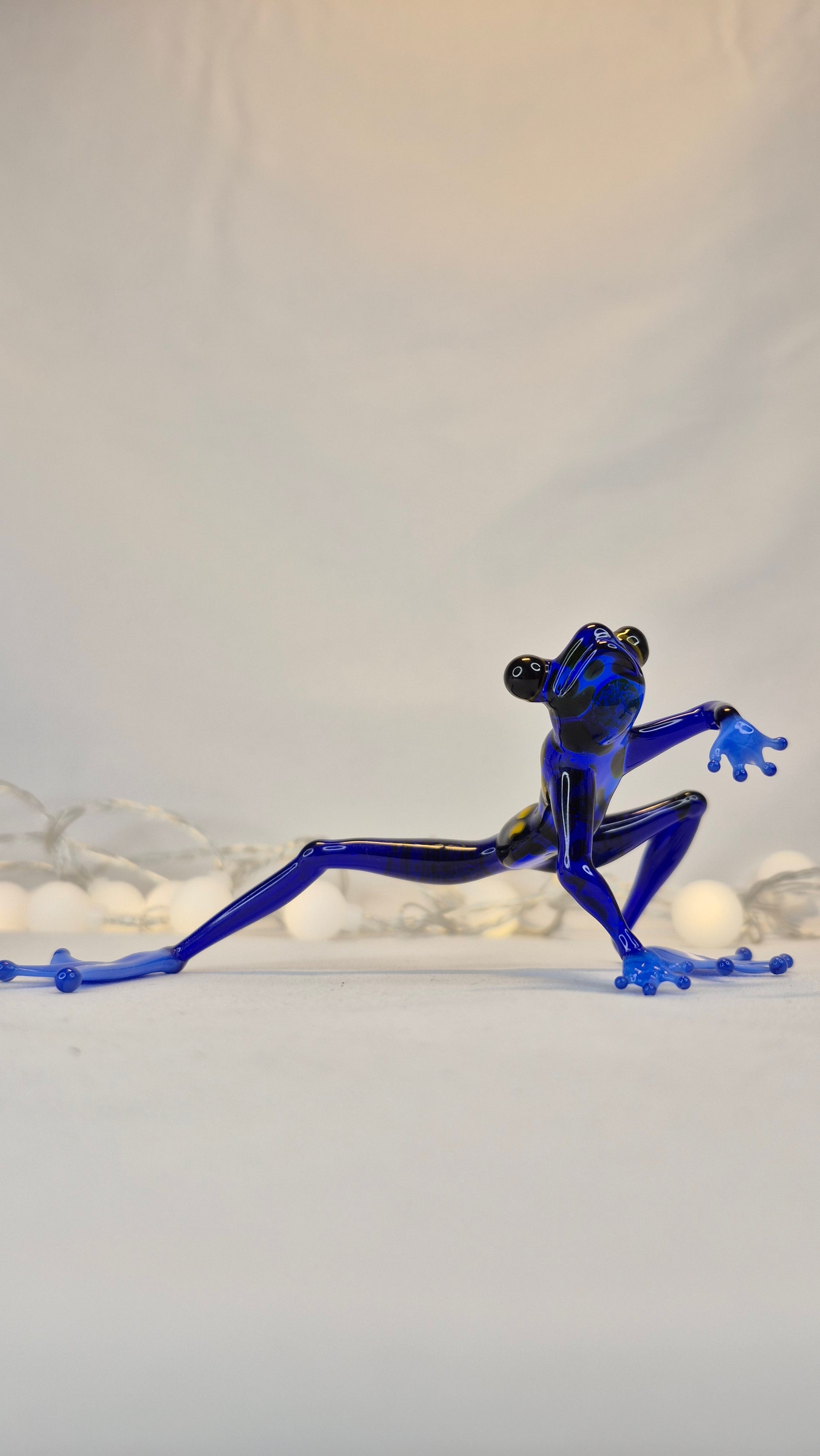 Handmade in the lampwork technique — a traditional glassworking method where glass rods are heated in an open flame and carefully shaped by hand with special tools. This technique allows the creation of detailed and expressive figurines without the use of molds, making each piece truly unique.
