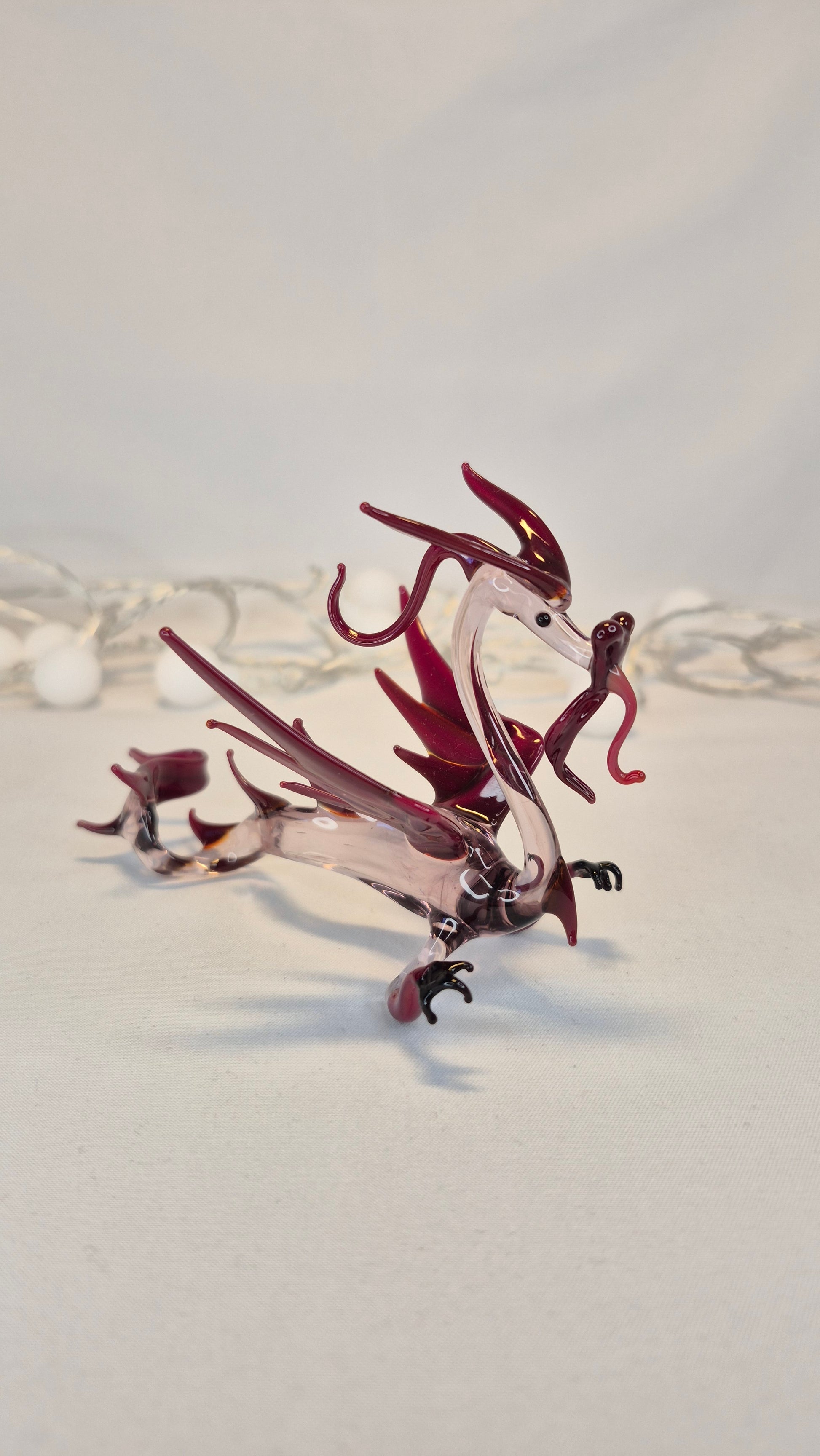This dragon is handcrafted using the lampwork technique, where glass is melted at high temperatures and shaped by hand into detailed figures. Made from high-quality Czech glass, it is durable and keeps its colors bright over time.
