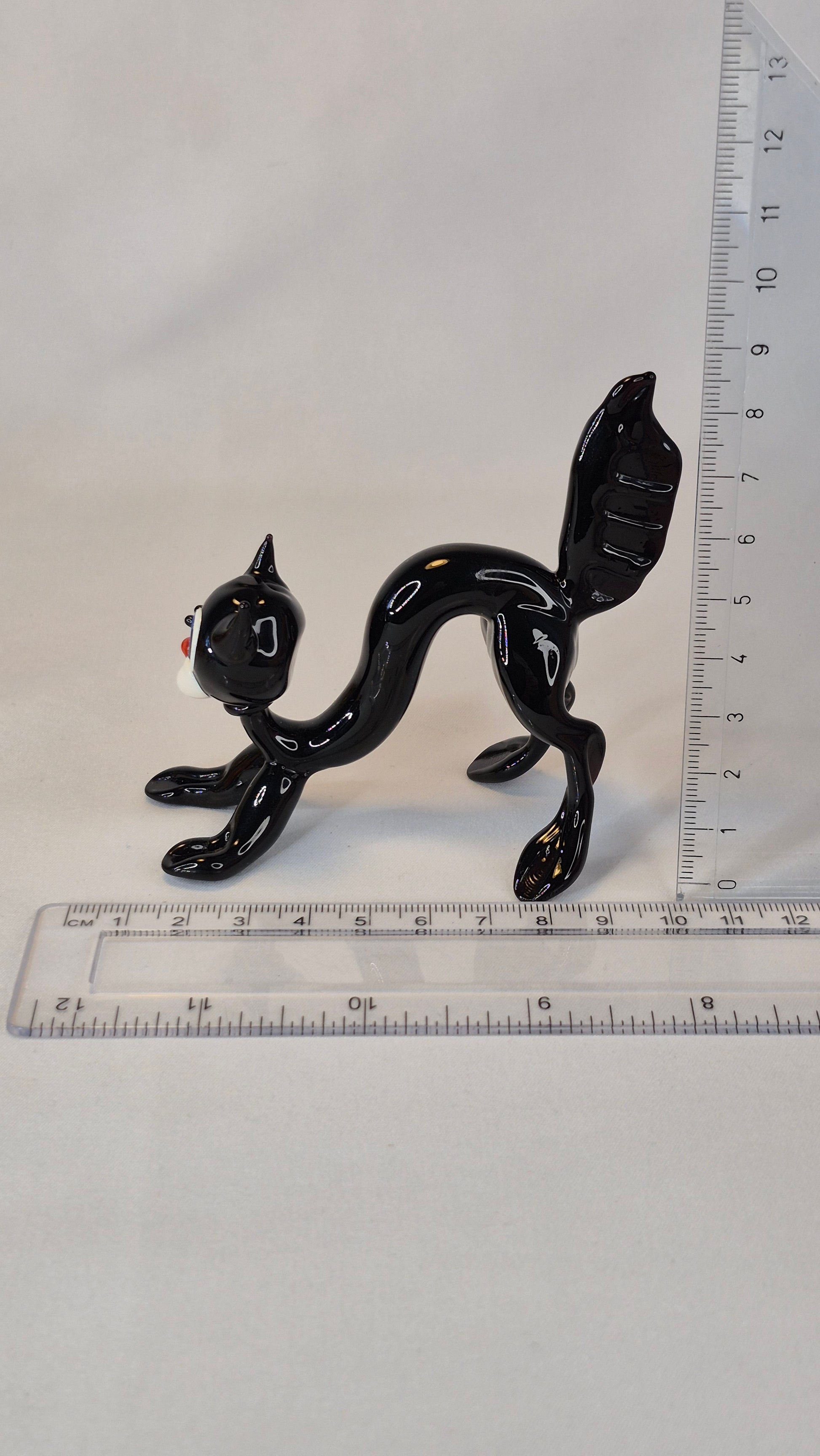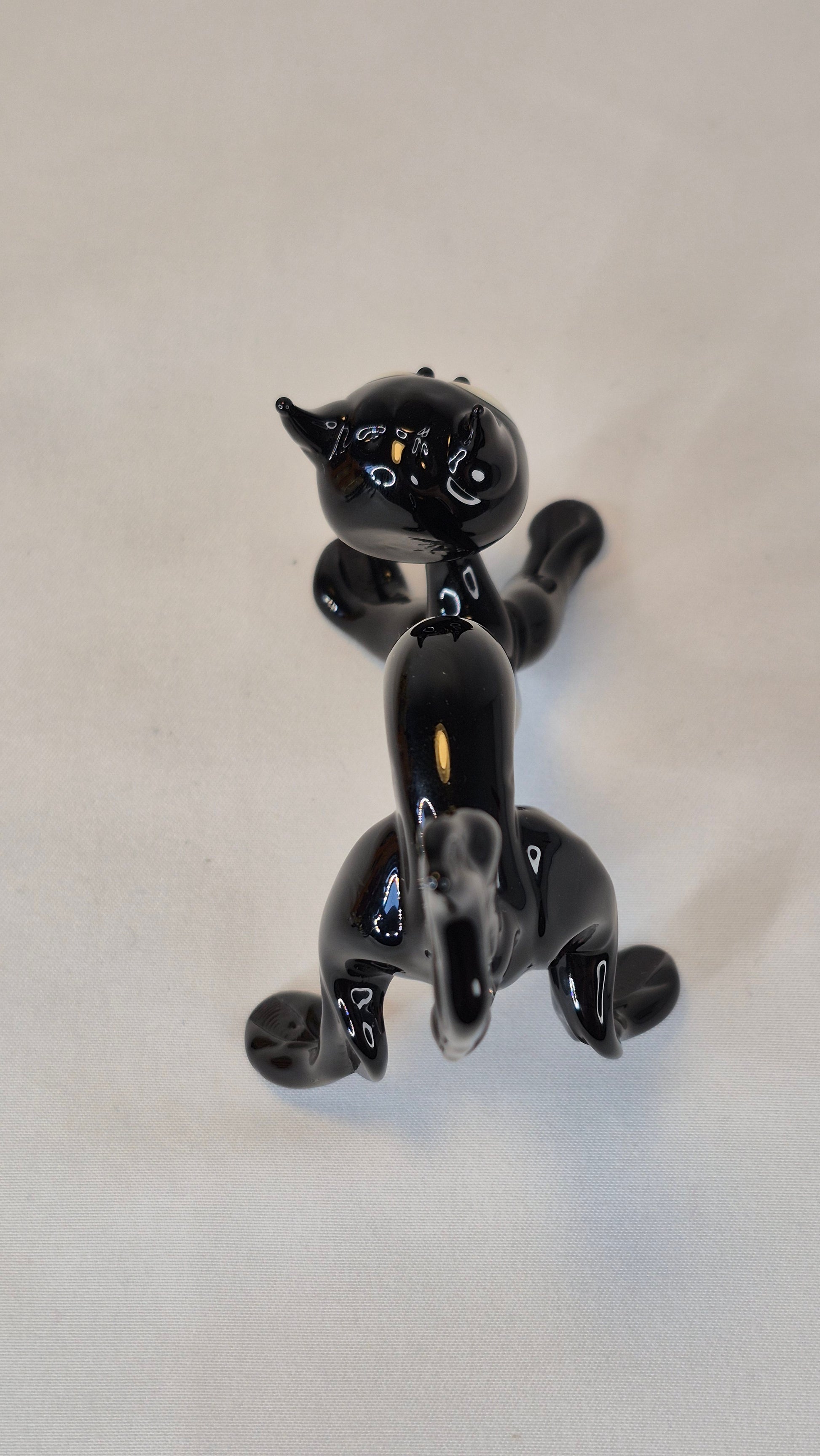 Handmade in the lampwork technique — a traditional glassworking method where glass rods are heated in an open flame and carefully shaped by hand with special tools. This technique allows the creation of detailed and expressive figurines without the use of molds, making each piece truly unique.