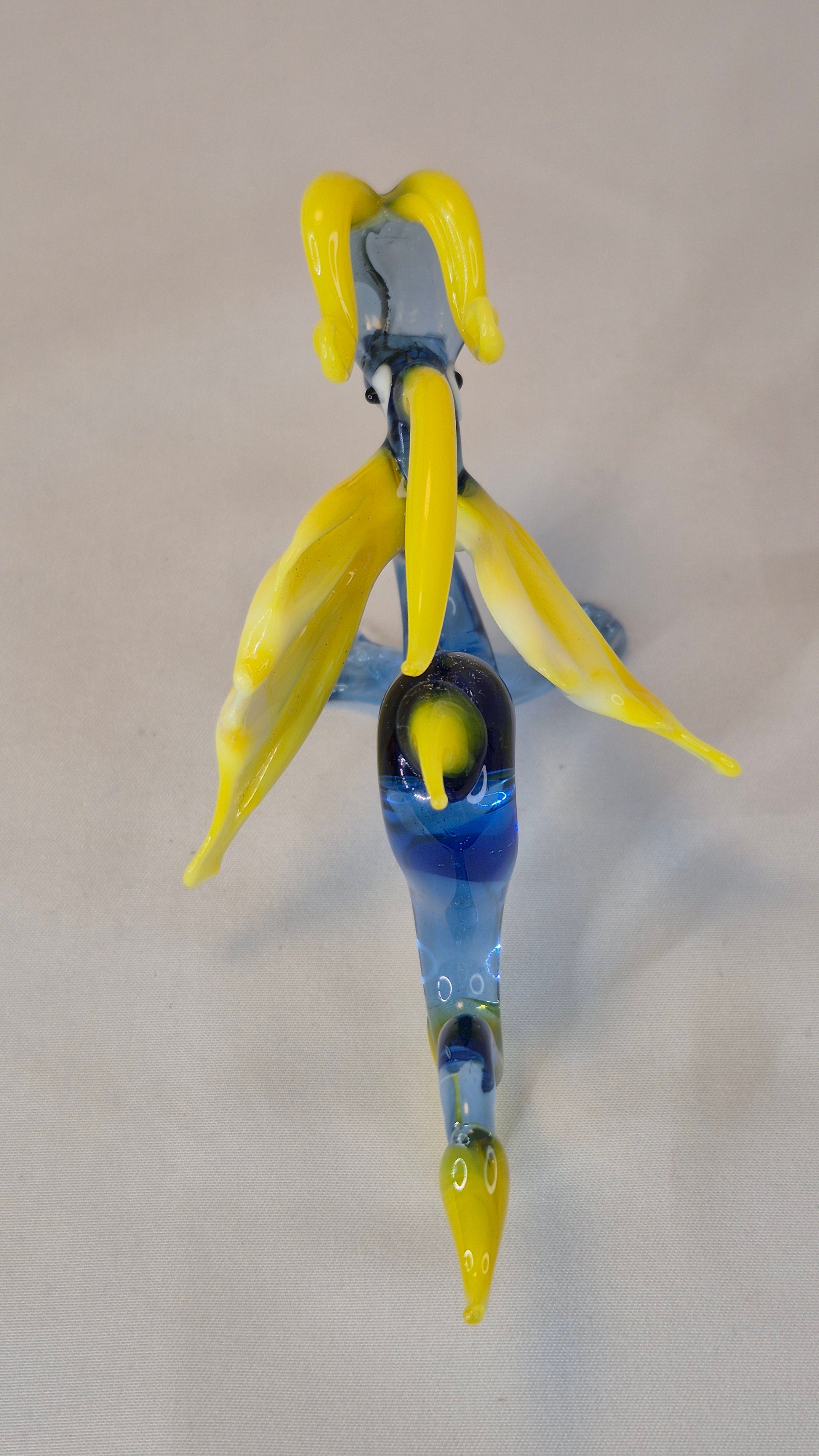 Handmade in the lampwork technique — a traditional glassworking method where glass rods are heated in an open flame and carefully shaped by hand with special tools. This technique allows the creation of detailed and expressive figurines without the use of molds, making each piece truly unique.