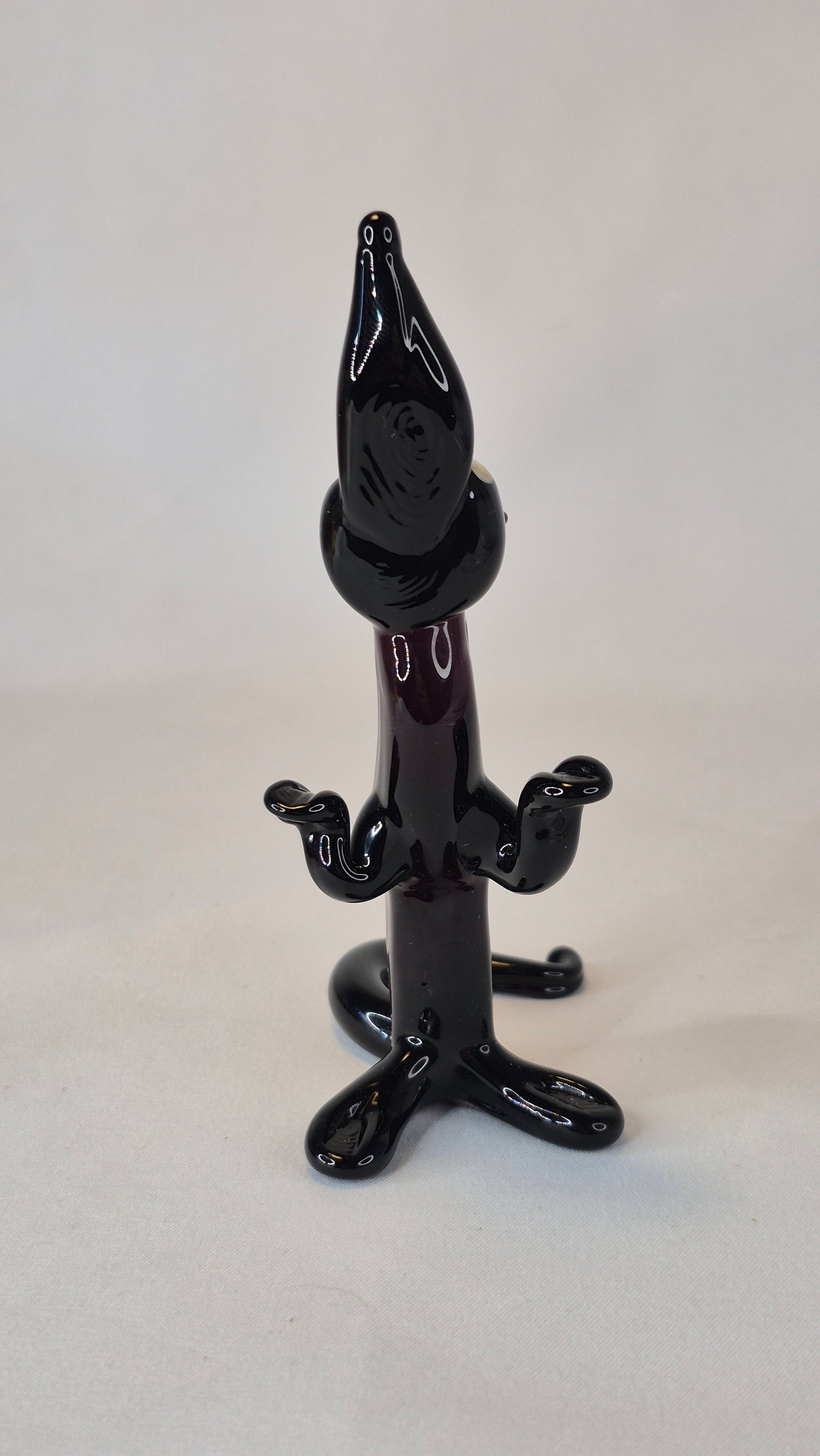 A large glass wolf howling at the moon. Handmade in the lampwork technique — a traditional glassworking method where glass rods are heated in an open flame and carefully shaped by hand with special tools. This technique allows the creation of detailed and expressive figurines without the use of molds, making each piece truly unique.