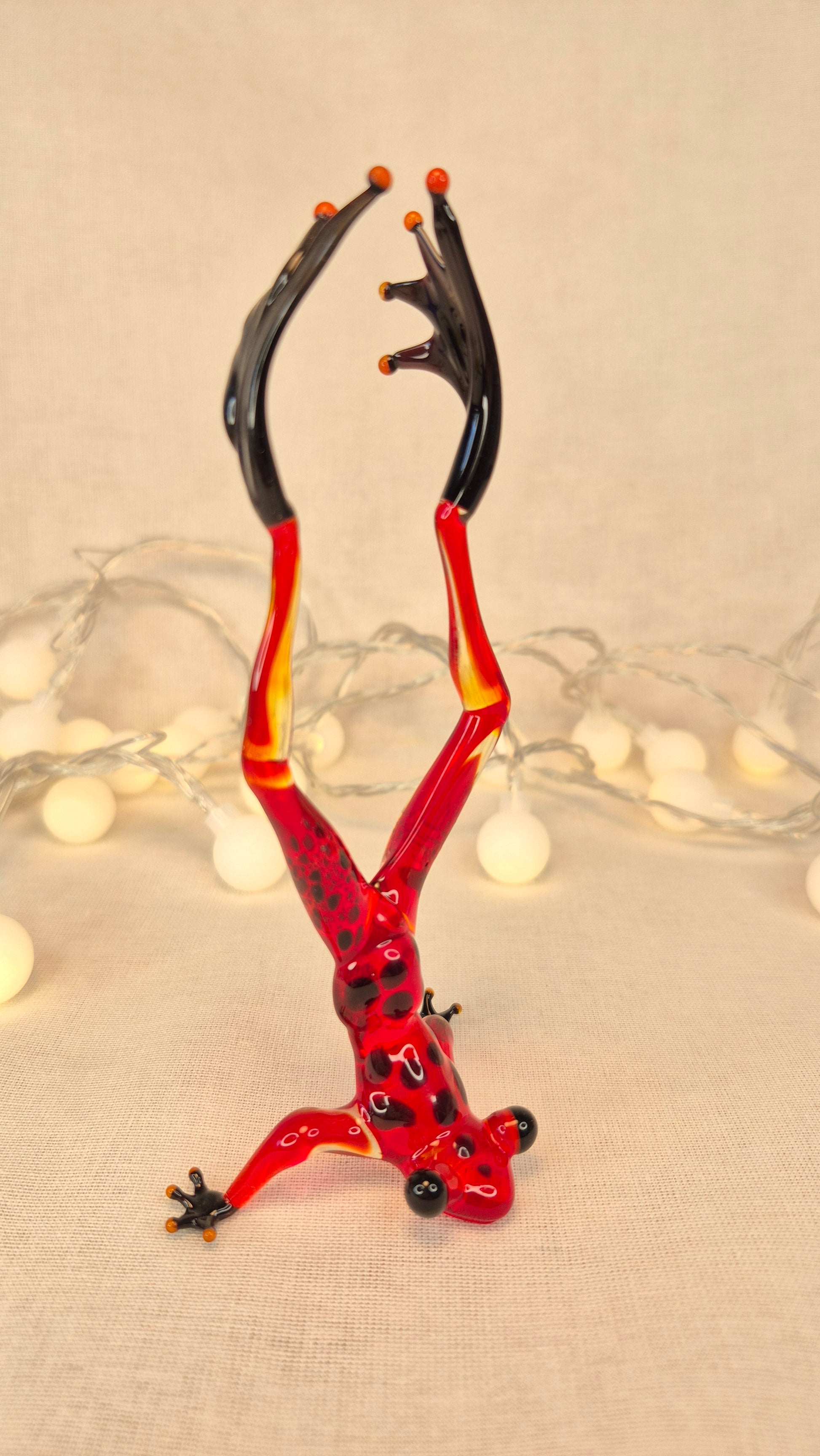 Handmade in the lampwork technique — a method where glass rods are melted in an open flame and carefully shaped by hand with special tools.