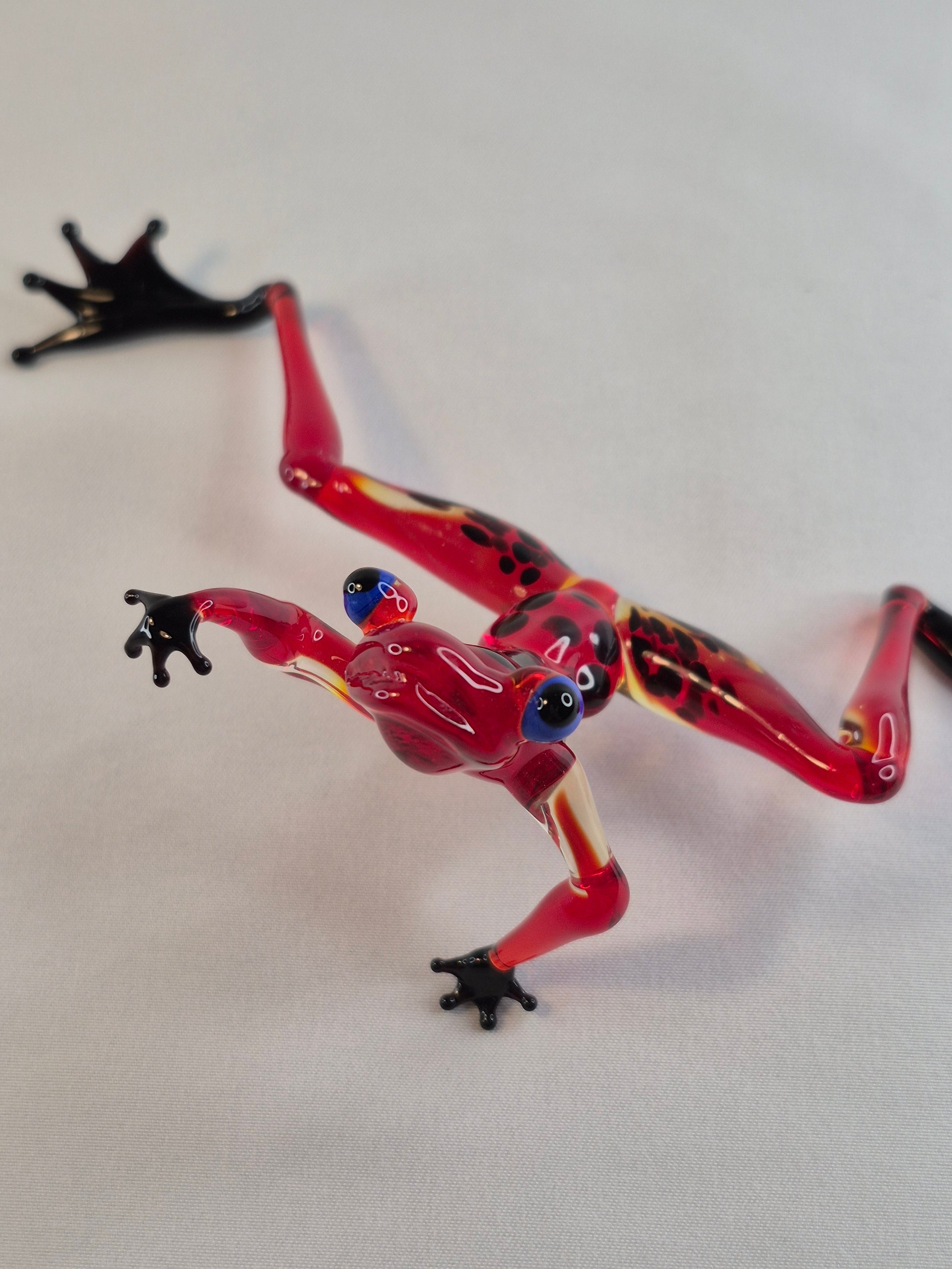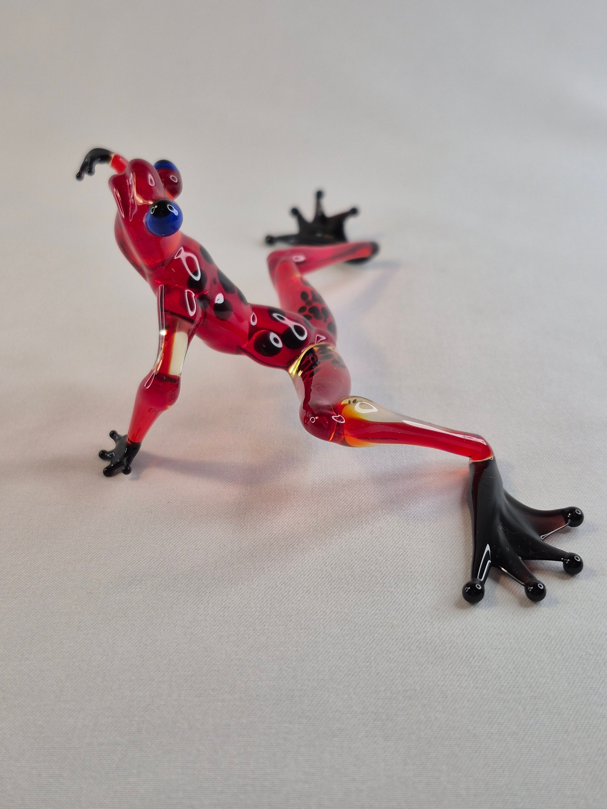 This is a glass figurine handmade using the lampwork technique — a traditional glassworking method where glass rods are heated in an open flame and carefully shaped by hand with special tools.