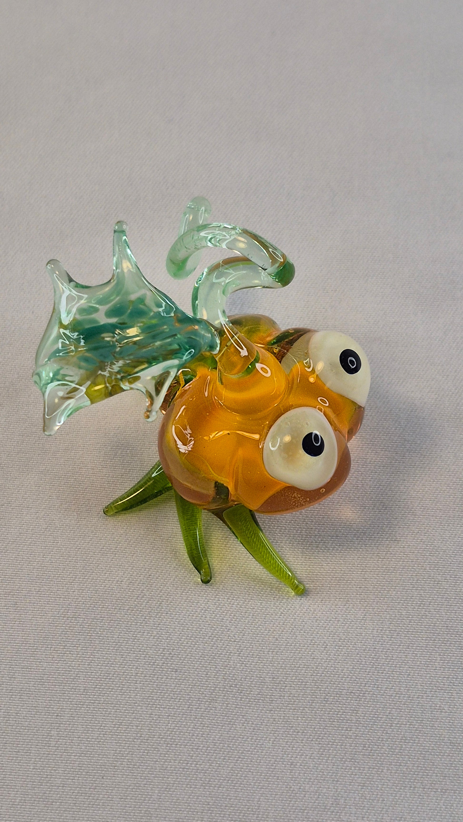 The figurine is handmade using the lampwork technique – molten glass is shaped over a gas flame, allowing the artist to form every detail by hand. This traditional method makes each piece slightly different, adding to its uniqueness and collectible value.