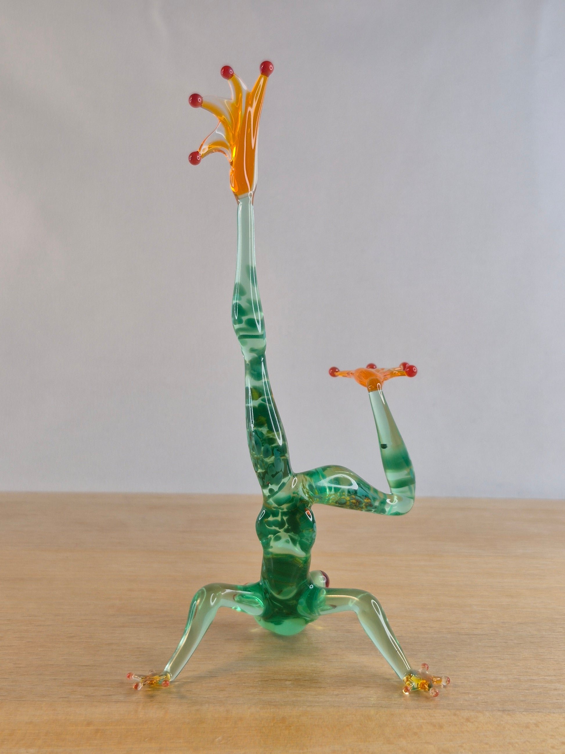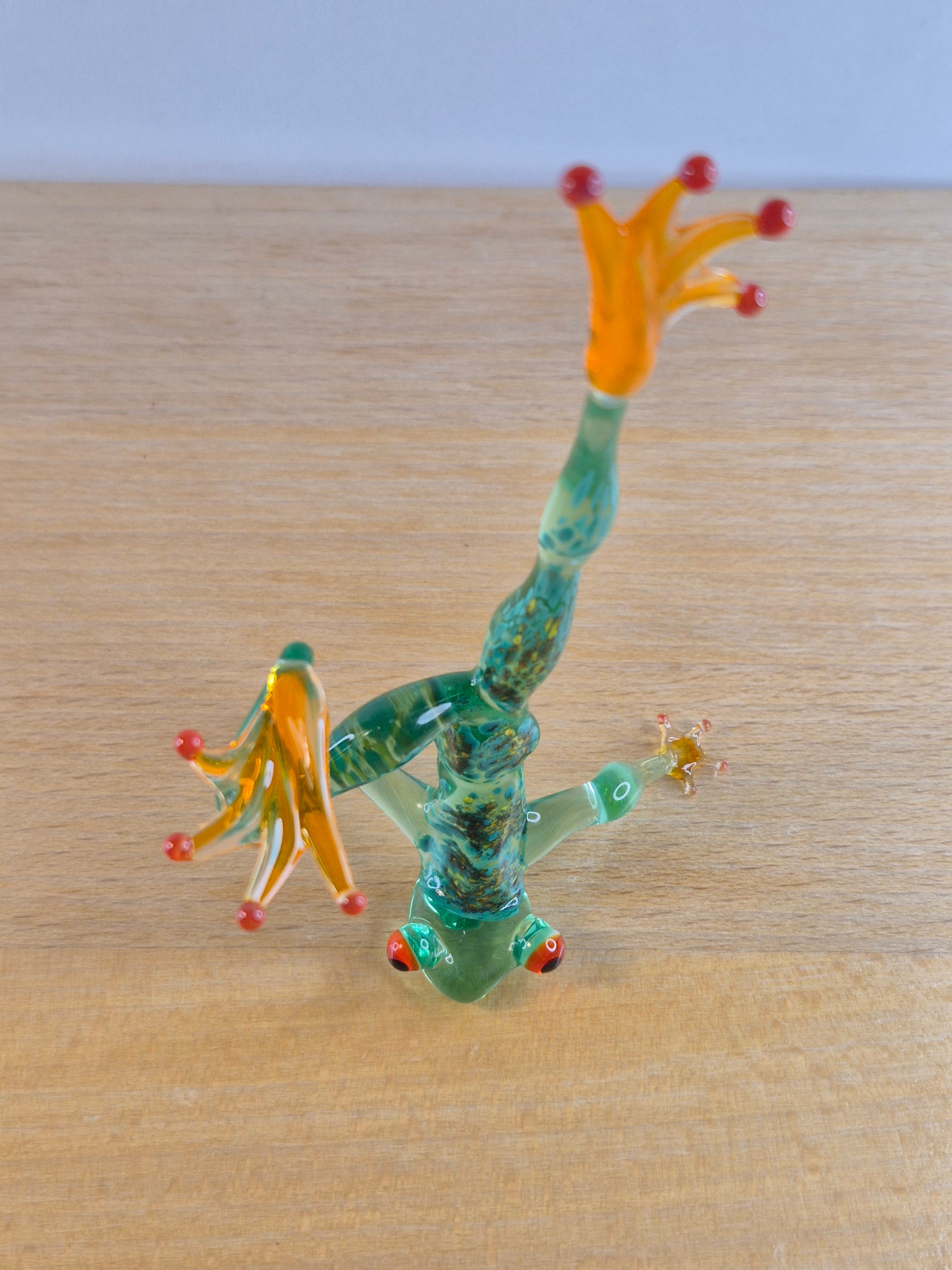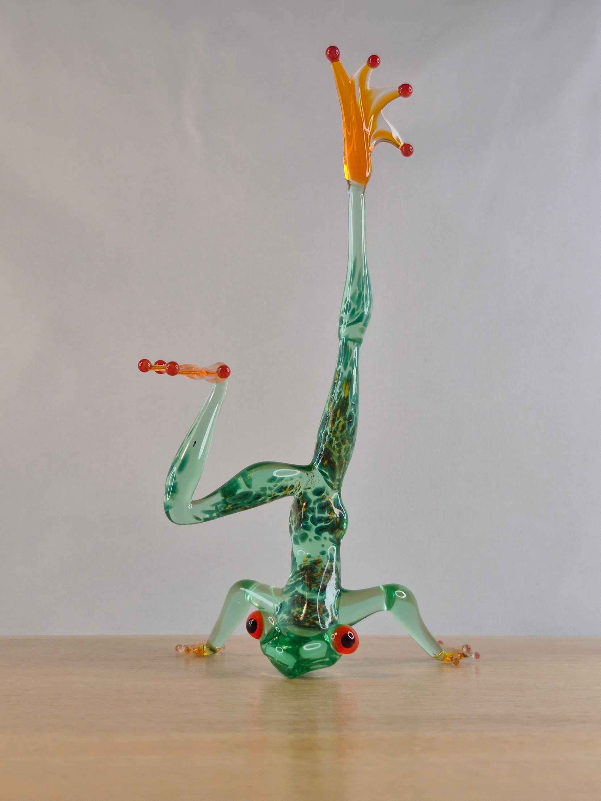 Each figurine is handcrafted in the traditional lampwork technique, where glass rods are melted in an open flame and shaped by hand without molds. This gives every frog its own personality and charm.